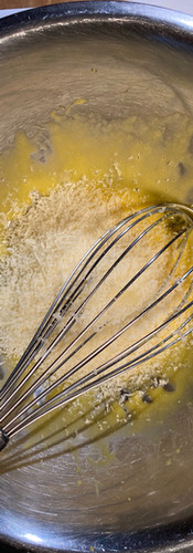 Mélanger l’eau de cuisson réservée avec le mélange oeufs parmesan.